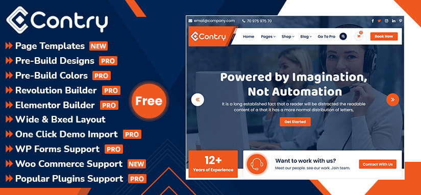 Contry is a trending WordPress theme with lots of powerful features, instantly giving a professional look to your online presence. It fits for business, portfolio, food & restaurant, gym & fitness, spa salon, medical practitioner & hospitals, landing pages, product pages, corporate business, digital agency, product showcase, financial advisor, accountant, law firm, wealth advisor, photography, personal, and any eCommerce stores. Contry Free version provides you more than 10 different designs and supports popular plugins WPML, Polylang, WooCommerce, Contact Form 7, Revolution Slider, Elementor, Visual Composer, WP-Forms, Ninja Forms, Jetpack, WP-Featherlight, Give (WordPress Donation Plugin), Gravity Forms, Yoast SEO and many more. View the demo of Contry Free https://demo.speciatheme.com/lite/contry