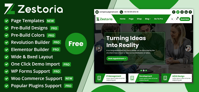 Zestoria is a trending WordPress theme with lots of powerful features, instantly giving a professional look to your online presence. It fits for business, portfolio, food & restaurant, gym & fitness, spa salon, medical practitioner & hospitals, landing pages, product pages, corporate business, digital agency, product showcase, financial advisor, accountant, law firm, wealth advisor, photography, personal, and any eCommerce stores. Zestoria Free version provides you more than 10 different designs and supports popular plugins WPML, Polylang, WooCommerce, Contact Form 7, Revolution Slider, Elementor, Visual Composer, WP-Forms, Ninja Forms, Jetpack, WP-Featherlight, Give (WordPress Donation Plugin), Gravity Forms, Yoast SEO and many more. View the demo of Zestoria Free https://demo.speciatheme.com/lite/zestoria